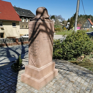 An der Ortsdurchfahrt steht auf einem Sockel aus grauen Bruchsteinen das einfach gehaltene Denkmal aus rotem Stein. Am Fuß des Denkmals ist ein Eisernes Kreuz zu sehen, obenauf liegt ein Stahlhelm. Im Sockel ist ein Stein mit der Jahreszahl 1922 eingelassen.