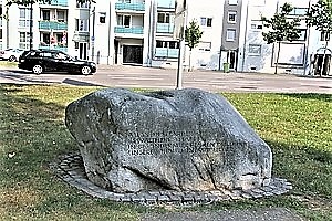 Am Friedrich-Ebert-Platz; Stein mit Inschrift.