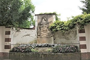 An der Kaiserstraße in einer Nische an der Mauer zum Stadtpark; auf einem Sockel Steinrelief „Mann mit Schwert“, Namen zum Teil schwer, nicht lesbar bzw. durch Blumen abgedeckt. Davor eine Steinplatte mit Inschrift.