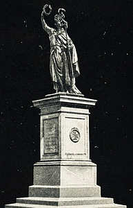 Denkmal für die Gefallenen des Krieges 1870/71: Abgestufter Quader mit eingelassenen Tafeln und EK-Zeichen; darauf Germania-Figur mit Adler-Standarte und Lorbeerkranz (abgerissen).