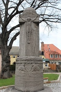Lommatzsch (Kirchenvorplatz), Landkreis Meißen, SachsenPLZ 01623 Auf dem Platz vor der Stadtkirche St. Wenzel steht ein ca. 4 m hohes rundes Steindenkmal. Dass es sich um ein solches handelt erkennt man nur aus einem umlaufende Relief mit den Jahreszahlen 1914 und 1918 in Eichenlaubkränzen und Eisernen Kreuzen. Namen sind keine erkennbar.