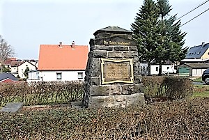 Neben dem Grundstück Dorfstraße 26 b steht das Denkmal. An dem ca. 2 m hohen Feldsteinmonument sind an der Vorder- und Rückseite eine Metallplatte angebracht .