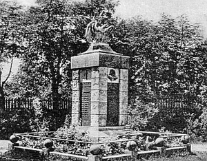 Nach der Übernahme des Ortes durch die neuen polnischen Machthaber 1945 wurde die deutsche Bevölkerung vertrieben und deutsche Denkmäler abgerissen. Im Ort steht noch der dreistufige Sockel sinnfrei in der Gegend.