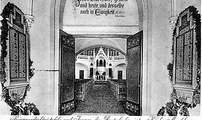 Wallonerkirche: GEDENKET DER HELDEN DIE FÜR DAS VATERLAND IHRLEBEN OPFERTEN MDCCCCIV- MDCCCCIX (52 Namen)