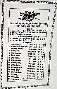 Von unserer Anstalt starben den Heldentod für Kaiser und Vaterland (Namen)