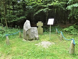 Gedenkort an einem Wanderweg in der Nähe des Tierparks. Ein Steinkreuz aus Fichtelgebirgsgranit, davor steht ein Marmorfels. Eine Informationstafel informiert über den Absturz.