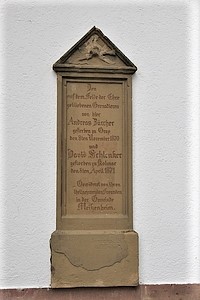 An der Außenwand der evangelischen Auferstehungskirche befindet sich eine schwarze, polierte Steintafel mit den Namen der Gefallenen bzw. Teilnehmern des deutsch-französischen Krieges 1870-1871. Und an anderer Stelle eine Sandsteintafel an der Außenwand.
