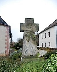 Auf dem Kirchhof steht ein ca. drei Meter hohes Steinkreuz für den 1. Weltkrieg. Auf der Vorderseite