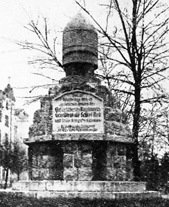 Denkmal für die im 1. Weltkrieg Gefallenen des Fußartillerie-Regiments „von Dieskau“ (Schlesisches) Nr. 6: Aus Natursteinen gemauerter runder tempelartiger Bau mit Widmungstafel. Auf dem Dach eine krönende große Granate (abgerissen).
