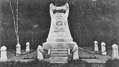 Denkmal für im 1. Weltkrieg im Kriegsgefangenlager Neuhammer gestorbene russische Kriegsgefangene: Auf einem kleinen Hügel eine stumpfe Pyramide mit krönendem doppelköpfigem Adler (abgerissen).