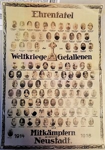 Ehrentafel (Bilder und Namen) der im Weltkriege Gefallenen (Bilder und Namen) und Mitkämpfern 1914 der Gemeinde 1918 Neustadt