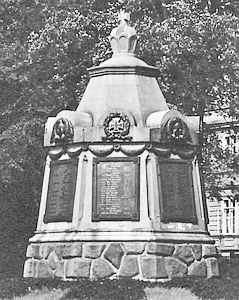 Ehemaliges Denkmal für Gefallene der Stadt im Kriege 1870/71: Achteckiges konisches Denkmal mit acht eingelassenen Namenstafeln, darüber jeweils ein EK-Zeichen im Ehrenkranz. Das Denkmal gekrönt von einer stilisierten Krone und darauf ein weiteres EK.
