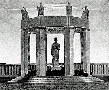 Denkmal für die Gefallenen des 1. Weltkriegs oberhalb der Stadt: Sechseckiges Rondell mit zentral stehender Soldatenfigur. An der oberen Umrandung früher Adlerfiguren auf allen sechs Ecken und Inschrift am inneren Rand. Namen der Gefallenen innen in die Säulen graviert. Seit vielen Jahren in schlechtem Zustand und Adler entfernt.