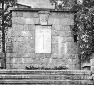 Auf den vorliegenden Fotos alter Postkarte konnten keine Inschriften abgelesen werden. Ob sich auf der Tafel auch Namen befanden ist nicht erkennbar.