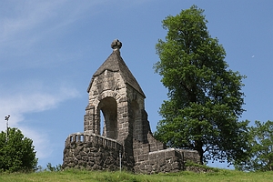 Schlachtendenkmal auf einer Anhöhe; Inschriften aussen und im Innern und an der Brüstung
