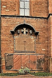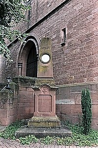Bei und an der Kirche; 1870/71: schlanke Säule beim Nebeneingang der Kirche, Erster und Zweiter Weltkrieg: Gedenktafeln an der Kirche.