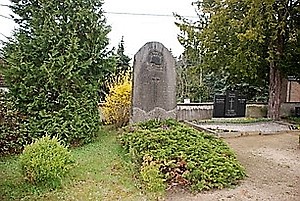 Auf dem Friedhof steht ein ca 1,8 m hoher Stein. Oben befindet sich ein Relief eines Stahlhelmes ,darunter ein Schwert. Neben selbigen die Gefallenenamen.