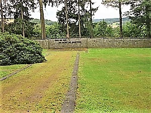 der Stadt an der Friedhofsbegrenzung ein Ehrenhain für die in Oelsnitz umgekommenen und beerdigten 52 Bürger der