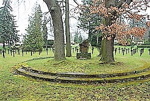 Auf dem Friedhof befinden sich zwei Kriegsgräberanlagen. Hinter dem Eingang stehen auf grüner