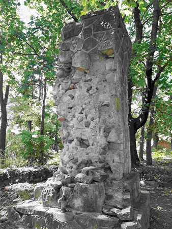 An diesem Denkmal wurde die Tafel zerschlagen, das EK-Zeichen entfernt, sowie große Teile abgebrochen. Der Rest sieht aus wie ein bizarres Kunstwerk.