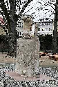 An der Jörg-Ratgeb-Strasse, südlich der Roßbrücke; Skulptur auf einem Sockel. Die Figur schmückte früher den Jünglingsbrunnen. Sie wurde als Kriegserinnerung an den 1. Weltkrieg gestiftet. Siehe auch: