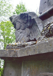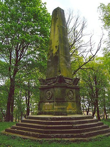 Denkmal für die Gefallenen des Krieges 1870/71. Auf einem sechsstufigen Sockel ein abgestufter und verzierter Obelisk mit Bildnissen der Kaiser und Adlerfiguren an den vier Ecken (entwidmet und beschädigt).