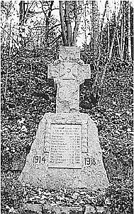 Denkmal-Nr. 09247795 Grob behauener Stein mit Steinkreuz, auf dem Steinkreuz Eisernes Kreuz dargestellt, auf dem Sockel unten die Namen und Sterbedaten der Kriegsopfer. Dem Denkmal später vorgelegt ein Gedenkstein mit Inschrift, es folgen deren Namen und das Todesjahr (z. Zt. nicht bekannt).