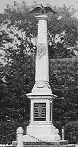 Denkmal für die Gefallenen des Krieges 1870/71: Abgestufter Obelisk mit unten eingelassenen Widmungs- und Namenstafeln, sowie einem krönenden Adler (abgerissen).