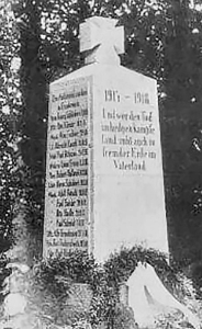 Auf der Seite kann man die Inschrift erkennen „Den Heldentod starben aus …..?“