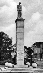 Die Inschrift befand sich vorn auf der Stele. An den Seiten waren die Namen der Gefallenen angebracht.