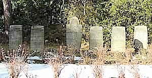 Probstheida (Südfriedhof: Kriegsgefangene 2. Weltkrieg), Stadt Leipzig, SachsenPLZ 04299 Gedenkstätte für Kriegsgefangene Opfer des 2. Weltkriegs: Sechs Gedenksteine mit Inschriften am Rande eines freien Feldes.