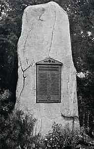 Die historische Aufnahme wurden dem Buch entnommen: „Deutscher Ehrenhain für die Helden von 1914/18“ (Dehain Verlag, Leipzig 1931). Dort sind leider außer der oberen Zeile die weiteren Inschriften, sowie die ca. 32 Namen nicht lesbar.