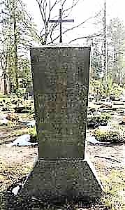 Das Denkmal ist stark mit Flechten bewachsen und deshalb schwer lesbar.