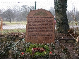 Gedenkstein auf dem Friedhof für Gefallene vom 15. und 17.04.1945. Zusätzlich Daten von Einzelgräbern.