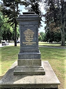 Frontseite Dem ehrenvollen Gedächtnis der im Kriege 1870-71 gebliebenen Soehne der Stadt Reichenbach gewidmet. (an den Seiten Namen)