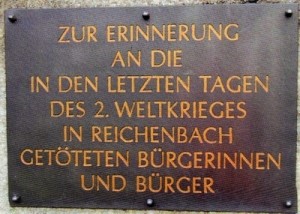 ZUR ERINNERUNG AN DIE IN DEN LETZTEN TAGEN DES 2. WELTKRIEGES IN REICHENBACH GETÖTETEN BÜRGERINNEN UND BÜRGER