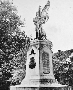 Denkmal für die Gefallenen des Krieges 1870/71: Abgestufte Stele mit angebrachter Widmungs- und Namenstafel, sowie Plakette mit Kaiserkrone und Portraits von Wilhelm I. und Friedrich III., gekrönt von der Figur einer Siegesgöttin mit Lorbeerkranz (abgerissen).