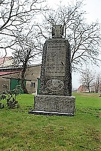 An der Stauchitzer Straße steht ein reichlich 2 m hoher Gedenkstein. Bekrönt von einem Eisernen