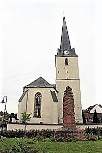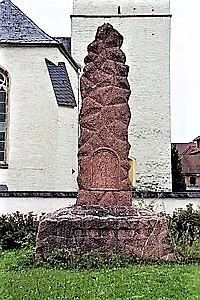 Auf dem Dorfplatz vor der ev.-luth. Kirche St. Jodocus steht auf einem gemauertem Natursteinsockel ein übermannshoher roter Stein (wahrsch. Porphyr). Er hat besonders im Bereich der Inschriften starke Verwitterungen.