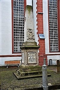 Vor der Kirche steht ein Obelisk für die Gefallenen des Feldzugs 1870/71.