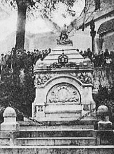 Denkmal für die Gefallenen des Krieges 1870/71 vor der Kirche: Reich verzierter Quader mit Bildnis Kaiser Wilhelm I., Kaiserkrone und Inschrift, darauf ein pyramidenförmiger Aufsatz mit krönendem großem Adler (abgerissen).