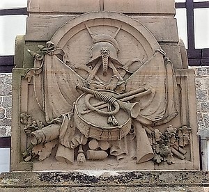 …….. zu ….. Sieg Treu ……. aus unserer Gemein, Ihnen soll dies Denkmal gewidmet sein. Weil in Kampf ….. sie den Erbfeind geschlagen, Alle Strapazen … ertragen Uns haben Kaiser …. gebracht Zu freien Deutschen uns gemacht, Drum seien ihre Namen der Nachwelt erhalten. Gott wolle über dies Denkmal und über Deutschland stets walten.