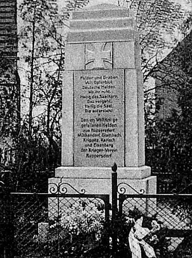 Den im Weltkriege gefallenen Helden aus Ruppersdorf, Mückendorf, Glambach Krippke, Karisch und Euenberg, der Kriegerverein Ruppersdorf