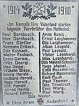1914 1918 Im Kampfe fürs Vaterland starben folgende Turnbrüder den Heldentod: (Namen) Ehre ihrem Andenken!
