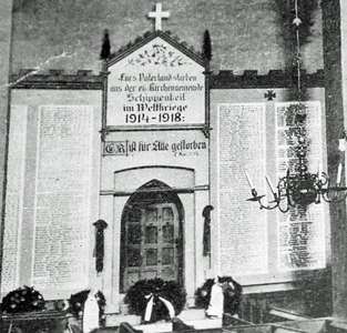 verschiedene kleine Ortsteile der Kirchengemeinde mit ihren Gefallenen verzeichnet.