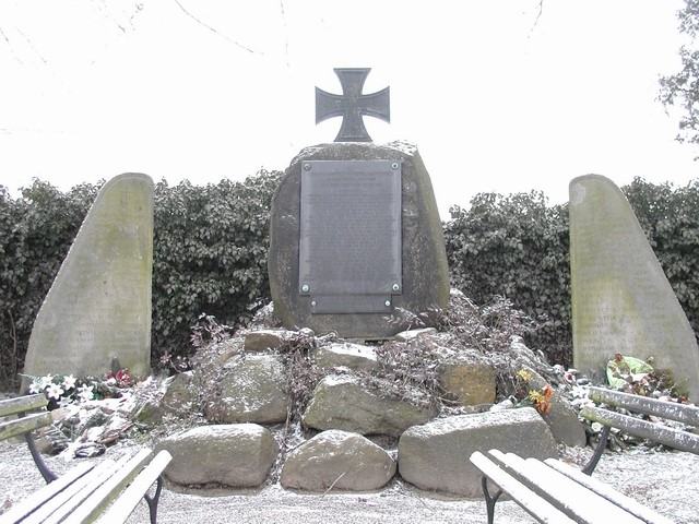 Denkmal mit Eisernem Kreuz und den Namen der Gefallenen des Ersten und Zweiten Weltkriegs.