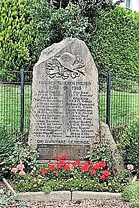 An der Hauptstraße steht ein ca. 1,5 m hoher heller Stein, oben ein Relief aus Stahlhelm, Schwert und Eichenlaub, unterhalb die Namen der Gefallenen des Ersten Weltkriegs. Darunter ist eine neuzeitliche Messingplatte angebracht mit den Namen der Gefallenen des Zweiten Weltkriegs und sieben zusätzlichen Namen aus dem Ersten Weltkrieg.