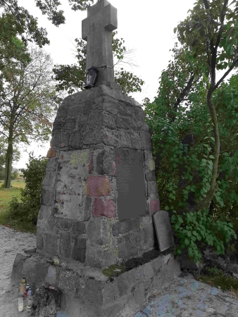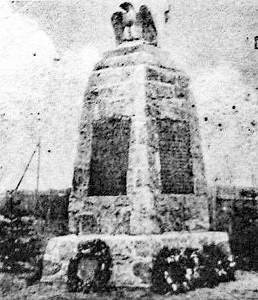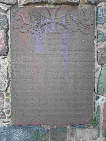 Dieses Denkmal steht noch in seiner äußeren Form, aber es wurden zwei der drei Tafeln und der Adler entfernt. Es wurde ein christliches Kreuz aufgesetzt, aber keine anderen Inschriften angebracht. Auf der einen erhaltenen Namenstafel aus Eisen ist der untere Bereich schon sehr verrostet, so dass einige Vornamen nicht mehr lesbar sind.
