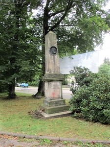 Schönau, Stadt Chemnitz, SachsenPLZ 09116 Vor der Kirche stehen zwei Denkmale. Ein typ. Obelisk für den Krieg 1870/71 (bis auf Widmung und zwei Namen von Schlachtenstätten völlig verwittert) und ein Denkmal für die Gefallenen des Ersten Weltkriegs (ohne Namen) bestehend aus zwei ca 3,5 m hohen Steinstelen mit queren Schlussstein oben und dazwischenstehenden Gedenk-/Widmungsstein.