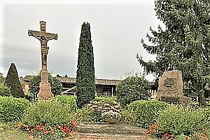 Schutterzell, Gemeinde Neuried, Ortenaukreis, Baden-WürttembergPLZ 77743 Denkmal im Friedhof; Steinblock, vorne mit Eisernem Kreuz und Inschrift (ohne Namen).